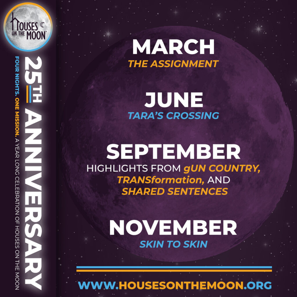 All funds raised from our 25th Anniversary Season will support Houses on the Moon’s programming, which includes the continued development of two original plays exploring LGBTQ+ history (in partnership with History UnErased and the Library of Congress), and child abuse and neglect prevention (in partnership with the University of Rochester); the world premiere of SKIN TO SKIN, a new play about Black maternal health; a live reading series for emerging playwrights, and more! All donations are tax deductible.